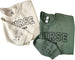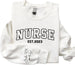Custom Nurse Embroidered Sweatshirt with Kids Names sleeve-New Mom Gift Personalized, Mother's Day shirt serves as the perfect sweatshirt for your unique, funny, or personalized designs. Features such as a lay flat collar and a classic unisex cut will make this your new favorite personalized shirt. ��� 65% cotton, 35% polyester ��� Air jet yarn for a softer feel & no pilling ��� 1x1 athletic rib cuffs & waistband with spandex; Double-needle stitching ��� Care: Machine wash cold; Tumble dry low