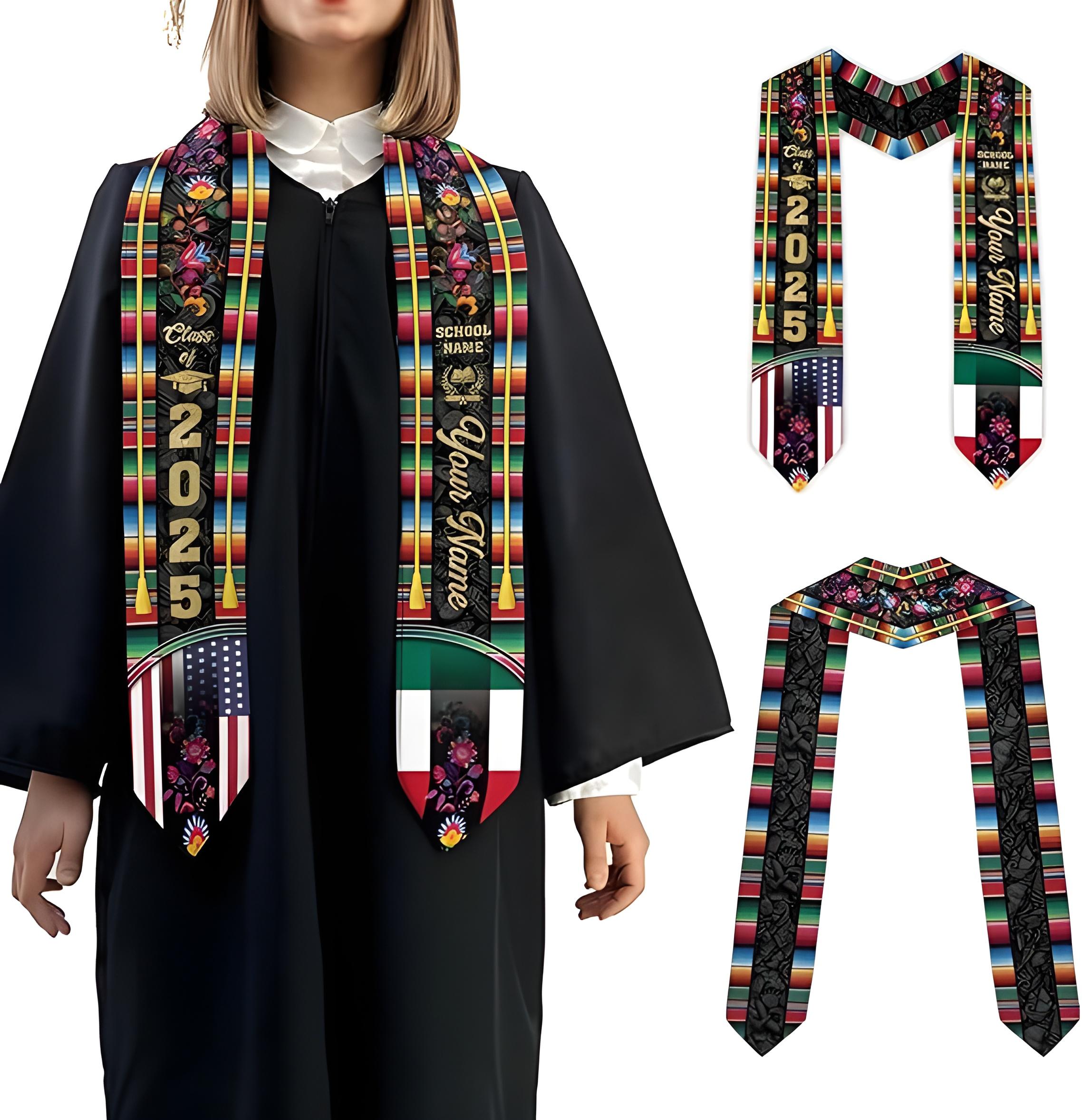 Personalized Mexican Graduation Sash, Custom Mexican Graduation Stole Class of 2025, Mexican Flag Estola de Graduación Gift