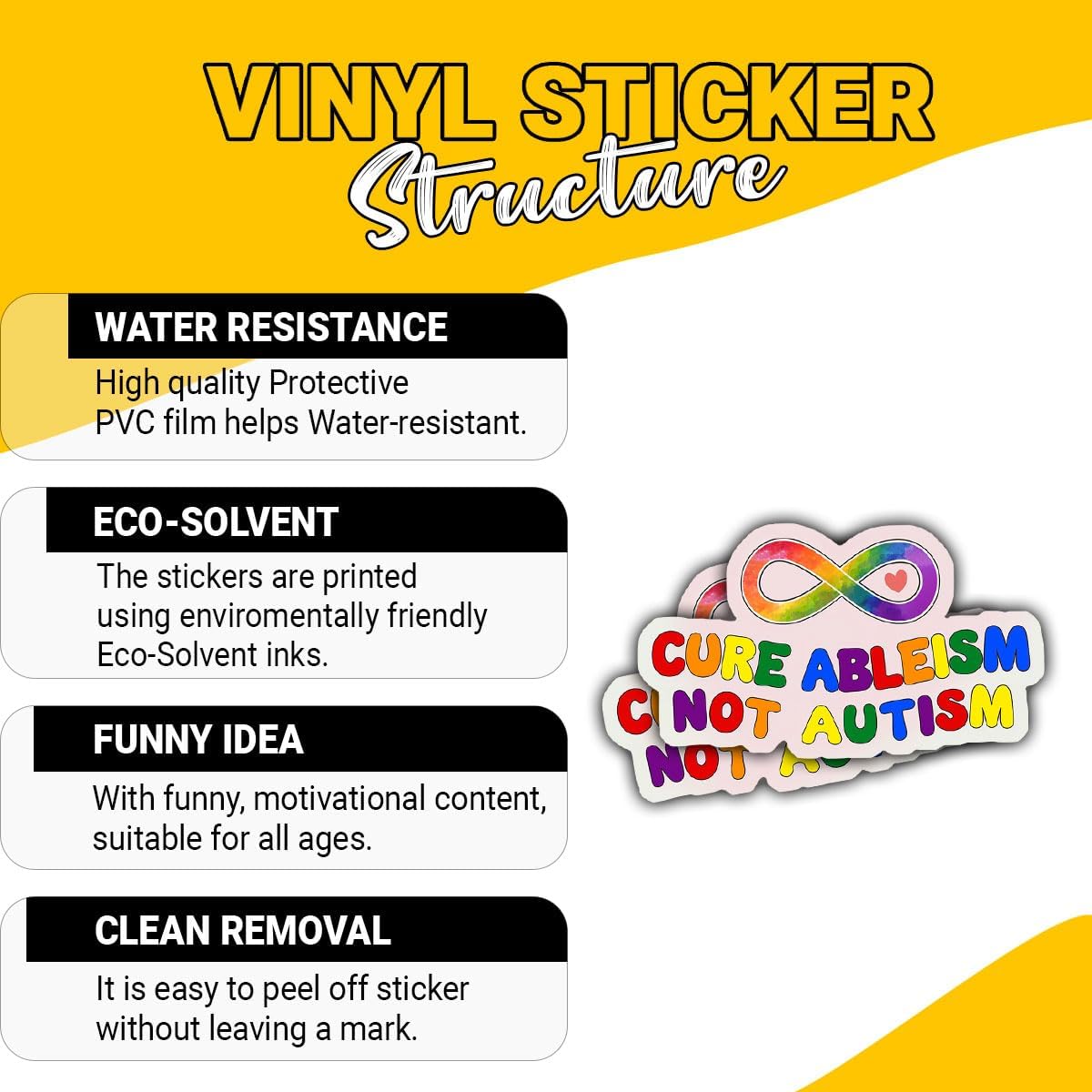 3PCS Cure Ableism Not Autism 3" Sticker , Neurodivergent Autistic Awareness Design, Die Cut Waterproof Vinyl Decal for Laptop, Water Bottle, Tumbler, Phone, Window, Notebook